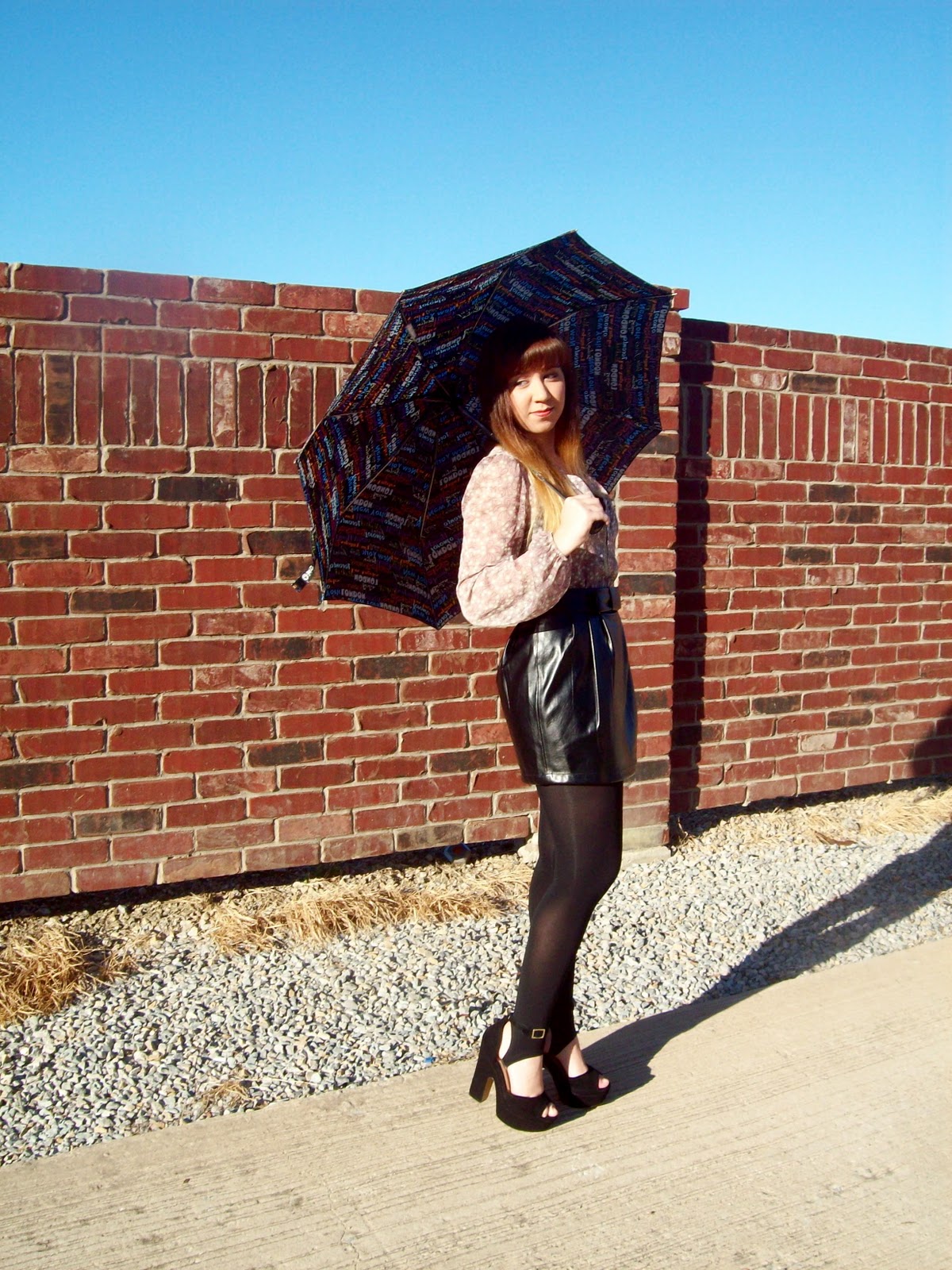 it was ridiculously sunny out, so i tried an umbrella on for size. SPOILER ALERT: it DID NOT help the sun issue. at all. |